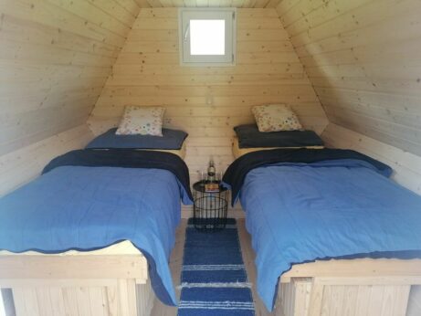 V domčeku sú 2 lôžka, ktoré sa dajú upraviť aj na nocľah.